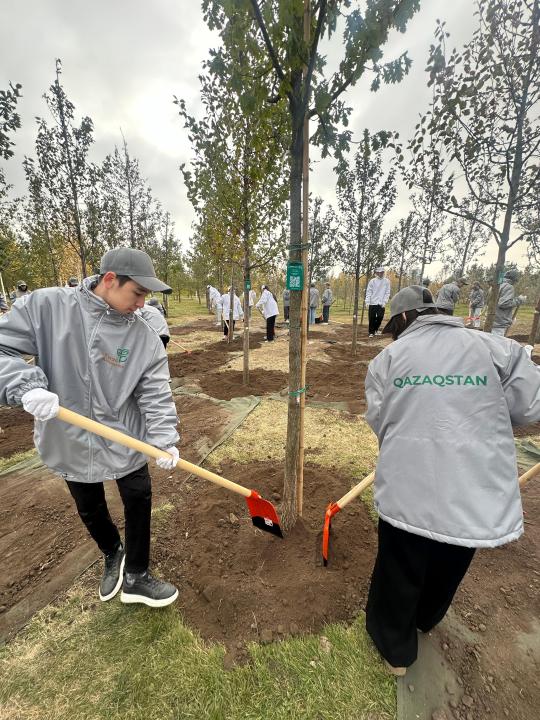 В рамках масштабной экоакции совместно с волонтёрами и экоактивистами Глава государства принял участие в посадке деревьев на территории столичного Ботанического сада. Всего на территорий было высажено 150 деревьев, это дуб, яблонь и туранга.