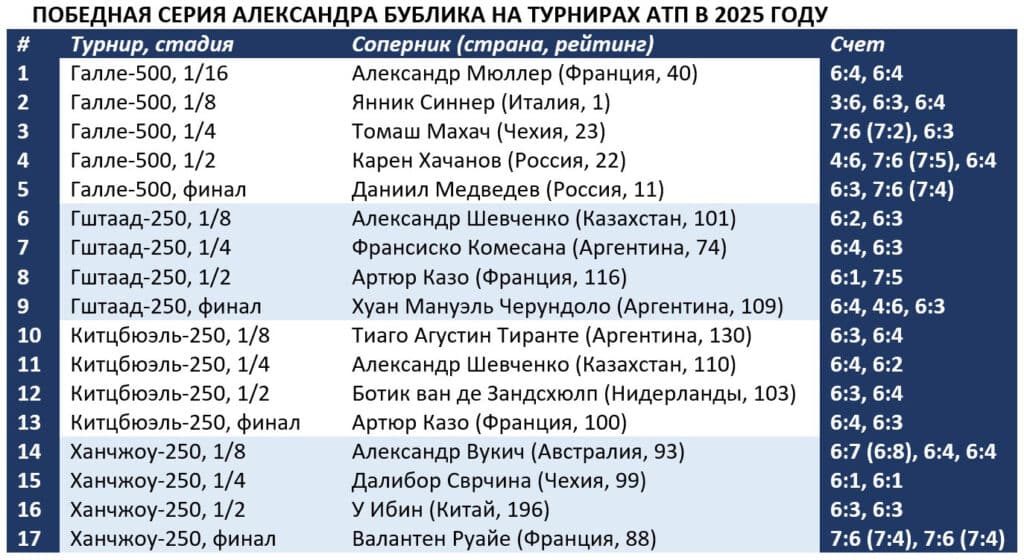 17 матчей не проигрывал Бублик на турнирах АТП, начиная с июньского Галле. Завоевал четыре трофея на трёх разных покрытиях . Поднялся на рекордное для себя 16-е место рейтинга. И вчистую проиграл французскому ветерану.