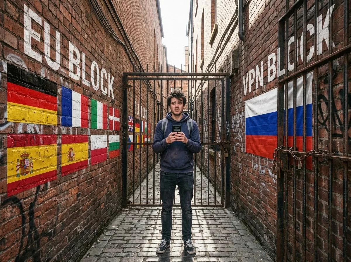 Человек в Берлине или Варшаве попадает в идеальную ловушку: без VPN он не видит российский контент из-за европейских блокировок, с VPN — из-за российских. Оба выхода закрыты. С 1 мая 2026 года ситуация грозит стать ещё хуже: доступ к российским сервисам через обычные VPN-приложения станет либо крайне затруднительным, либо крайне дорогим.