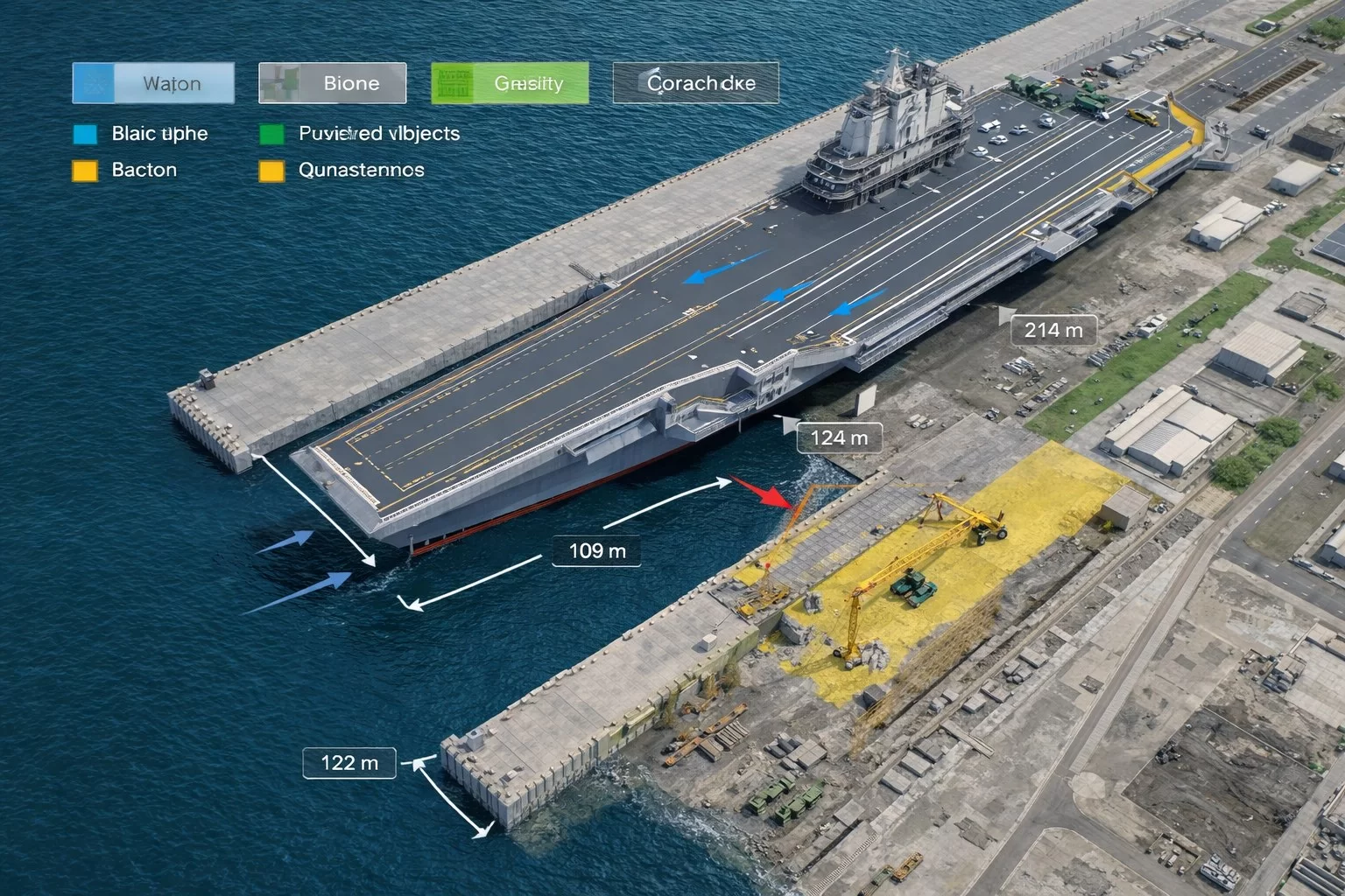 3. Строительство новых причальных стенок — видны участки береговой инфраструктуры на разных стадиях готовности. Это косвенно указывает на планы по наращиванию группировки.